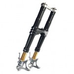 โช้คหน้า ปรับประดับได้เต็มพิกัด ขนาดแกน 43 มม. Öhlins FL936 ซึ่งพัฒนาให้เบาขึ้นในทุกๆส่วนรวมถึงสปริง