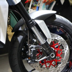 จุดแรก ชุดล้อและเบรกหน้าที่ยึดแบบมาจาก Honda CBR1000RR รุ่นปี 2018 ซึ่งแน่นอนว่ามันจะต้องมาพร้อมกับระบบ ABS อันขึ้นชื่อของทางค่ายด้วยหากทำตลาดจริงๆ แม้ว่าในตัวจานเบรกของรถคอนเซปท์คันนี้จะไม่มีจานเซนเซอร์ติดตั้งมาให้ด้วย