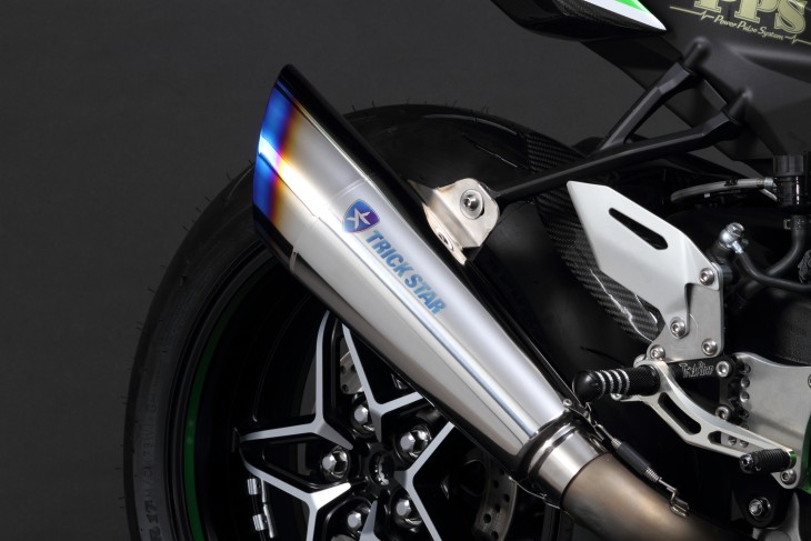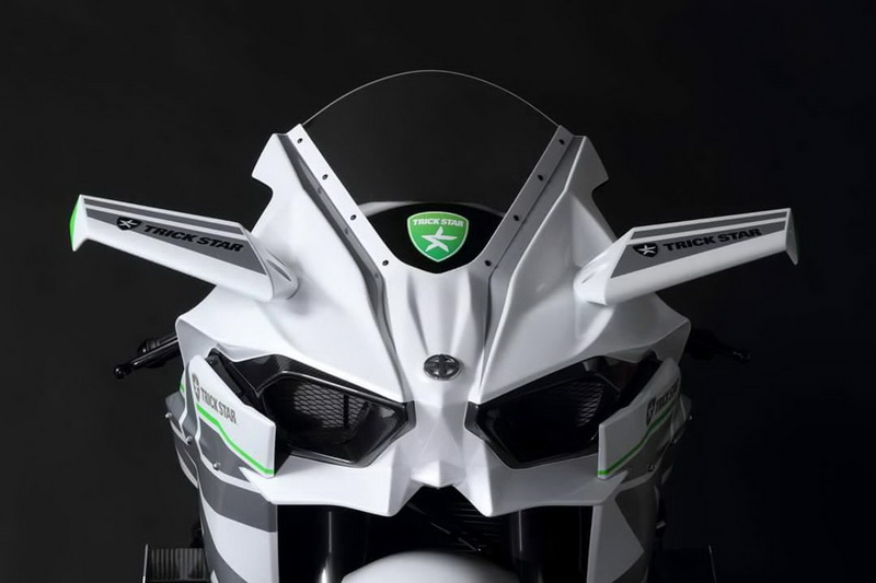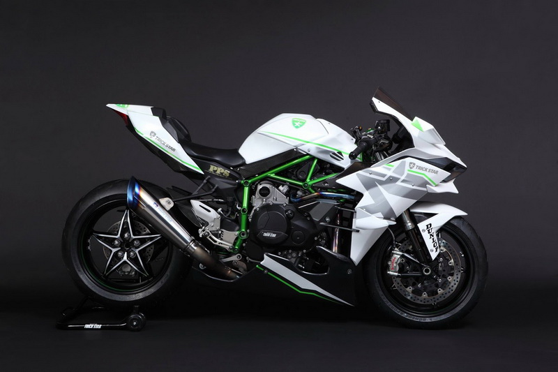 สำหรับ Kawasaki H2R TrickStar มากับชุดสี ขาว-เงิน มีการทำทางเดินไอเสียใหม่ สวมท่อไอเสียภายในสำนัก TrickStar