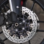 ด้านหลังจานเดี่ยวผลิตจาก CNC (ในรุ่นท๊อป XRT+XCA) ขนาด 255 มม. คาลิปเปอร์ Nissin ลูกสูบเดี่ยวแบบเลื่อน