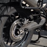 โช้คเดี่ยว WP พร้อมกระปุกน้ำมันแยก ปรับความแข็งได้ด้วยไฮดรอลิก ปรับความหน่วงของการคืนตัวของโช้คได้ ระยะยุบตัว 215 มม. ล้อหลัง