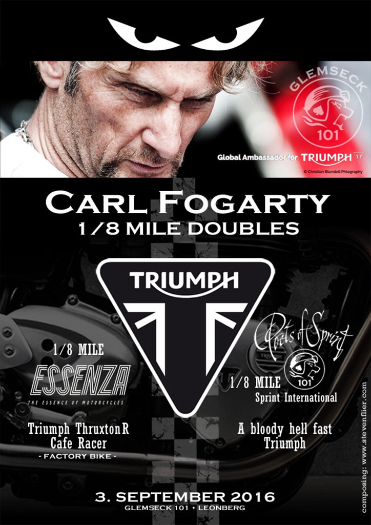 ในวันที่ 2 กันยายนที่ผ่านมา ทาง Triumph ได้ทำการเปิดตัวสองตัวแข่งพ่วงซุปเปอร์ชาร์จพื้นฐาน Thruxton R โดยใช้ชื่อว่า “The White Bike” และ “The Bulldog” เพื่อเข้าร่วมแข่งขันแดรก 1/8 ไมล์ “Essenza – The Essence of Motorcycle” หรือที่รู้จักกันดีในชื่อของ Glemseck 101 ประเทศเยอรมนี ซึ่งจัดขึ้นไปแล้วในวันที่ 3 กันยายนหรือ 2 วันก่อนหน้านี้