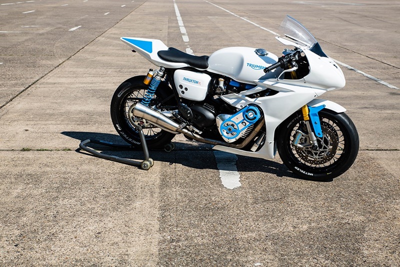The White Bike สีขาวคันนี้นั้นถูกจับมาสวมชุดแฟริ่งด้านหน้าและเบานั่งด้านท้ายที่ยืมมาจาก Daytona 675R เพื่อให้ถูกต้องตามหลักอากาศพลศาสตร์มากขึ้น ตามด้วยการเปลี่ยนสวิงอาร์มทำมือแบบดามล่างตามสไตล์ตัวแข่ง MotoGP และเปลี่ยนอัตราทดเกียร์ใหม่ให้สอดคล้องกับระยะทางและกำลังของตัวรถที่มากขึ้นเกือบเท่าตัว โดยนักบิดที่จะนำเจ้าอสูรขาวคันนี้ลงแข่งขันคือ Carl Fogarty อดีตนักแข่งรายการ WSBK และ MotoGP ยุคปี 90 ที่ในปัจจุบันรับหน้าที่เป็น Global Brand Ambassador ให้กับทาง Triumph
