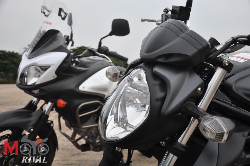 เริ่มด้วยการติดเครื่องยนต์ทั้ง 2 คัน คุณจะต้องกำคลัชให้สุดทั้ง 4 นิ้ว ซึ่งน้ำหนักคลัชนั้นกำลังดี ไม่นิ่มไม่แข็ง สามารถขี่ใช้งานในเมืองได้โดยไม่เมื่อยนิ้วมือ แน่นอนว่าหลายคนที่อาจจะคุ้นชินกับคลาส 650 ที่ใช้แบบสูบเรียงมาแล้ว หากลองเบิลของ Suzuki 650 ดู จะพบว่าเครื่องบล๊อก V นั้นให้ซุ่มเสียงดุดัน และดูไพเราะน่าฟังยิ่งกว่า