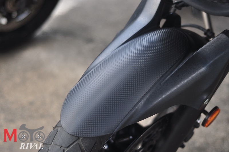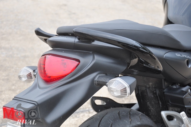 ทางด้านท้ายไฟท้ายที่มีรูปทรงใกล้เคียงกับ Gladius แต่จะมีความเหลี่ยมมากกว่า ไฟเลี้ยวกรอบสีส้มทรงลูกศร ขณะที่กระจกมองข้างรูปทรงเหลี่ยมเชย แต่ทว่ามันได้ออกแบบมาเพื่อเน้นการใช้งานโดยแท้จริง มองเห็นมุมภาพที่ชัดเจน ไม่ได้เพียงแต่เน้นดีไซน์กระจกที่สวยงามแต่ มุมมองกระจกนั้นช่างแคบเหลือเกิน