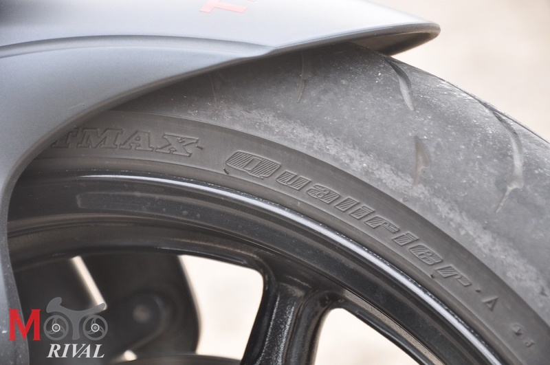 ด้านยาง Dunlop Sportmax Qualifier ด้านหน้าไซส์ 120/70/ZR17 หลัง 160/60/ZR17 ซึ่งยางตัวนี้ถือเป็นยางสปอร์ตเกรดกลาง ให้การยึดเกาะได้ในระดับปลานกลาง การเทโค้งสำหรับ Gladius ที่มียาง 160 มม. ก็ถือว่าทำได้ไม่เลว เพียงแต่ว่า ลักษณะท่าทางการนั่งร่วมกับแฮนด์บาร์ที่ค่อนข้างแคบ อาจจะดูไม่เหมาะแก่การเล่นโค้งมากนัก แต่เราก็ชอบเพราะว่ามันให้ความคล่องแคล่วใช้งานในเมืองได้แบบรถ Bigbike สำหรับคนเมืองในอุดมคติเลยทีเดียว