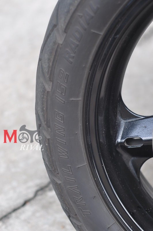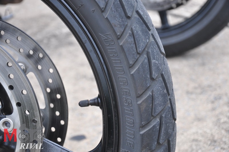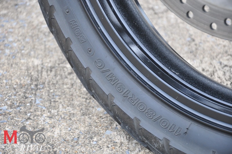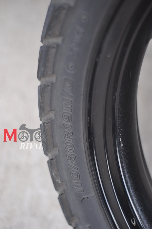 สำหรับล้อขนาด 19” ด้านหน้า และ 17” ด้านหลัง ที่สวมยาง Bridgestone Trail Wing ซึ่งเป็นยางรูปแบบ Dual/Enduro ด้านหน้าไซส์ 110/80R19 ยางหลังไซส์ 150/70R17 ซึ่งมันเหมาะแก่การนำไปขับลุยตามทางฝุ่นเป็นอย่างดี ด้วยยางหน้าที่แคบ 110 มม. ทำให้การหักเลี้ยวนั้นทำได้ ง่ายคล่องตัวหากคุณได้ขี่ในเมือง การเซาะช่องรถติด ก็ทำได้ไม่เลวนัก แม้รถจะดูคันใหญ่ก็ตาม แต่ด้วยระดับแฮนด์บาร์ที่สูงช่วยให้มันสามารถขับเลยผ่านกระจกรถยนต์ไปได้สบาย เว้นเสียแต่ถ้าคุณเจอ รถตู้, กระบะ, รถยกสูง นั่นอาจทำให้คุณติดเข้ากับกระจกมองข้างของรถเหล่านี้ได้
