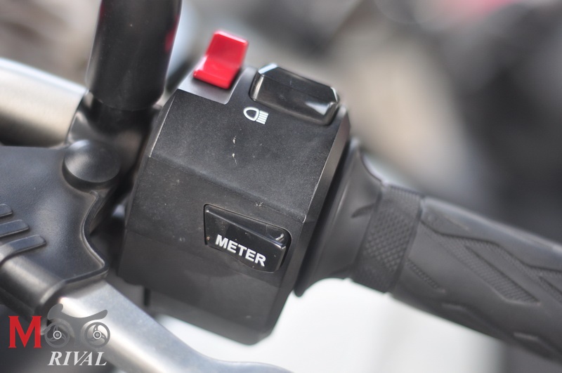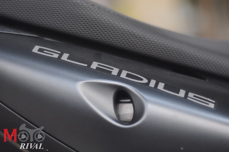 ชุดมาตรวัดกรอบวัดรอบเครื่องแบบเข็มทรงกลมล้อมรอบด้วยจอแสดงผลดิจิตอล ที่บอกความเร็วเป็นตัวเลข, บอกตำแหน่งเกียร์, เกจ์วัดน้ำมัน, อุณหภูมิเครื่อง, เวลา, Odo, Trip 1-2, อัตราสิ้นเปลือง ขณะที่ชุดสวิทช์ไฟซ้ายตำแหน่งปุ่มที่เป็นไฟ Pass ใน Gladius จะใช้ควบคุม Meter (มาตรวัด) โดยไฟ Pass จะอยู่ในปุ่มเดียวกับไฟสูง