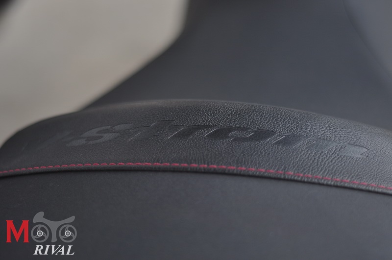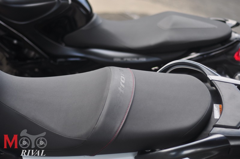 เบาะนั่งชิ้นเดียวแยก 2 ระดับ โดยตำแหน่งผู้ขี่จะเว้าเตี้ยลง แม้จะเตี้ยลงแต่ทว่าตัวเบาะที่ดูกว้าง และมีความสูงที่ระดับ 835 มม. ทำให้ผู้ทดสอบ ที่มีส่วนสูง 174 ซม. ที่สวมรองเท้าผ้าใบ ยังเหยียบเท้าได้ไม่เต็มเบาะดีนัก