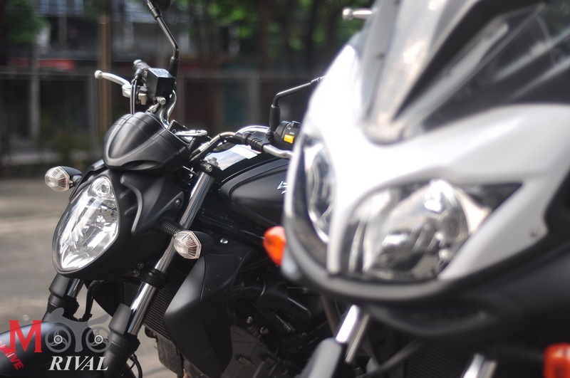 ซึ่งการใช้งานนั้นด้วยแรงม้าที่ต่างกันอยู่เล็กน้อยของ Gladius อาจทำให้รู้สึกถึงความแรงและดุดันกว่าเล็กน้อยที่รอบเครื่องสูงกว่า ซึ่งมีผลร่วมกับรูปทรงรถ Naked ที่ลมปะทะลำตัวมากกว่าอีกด้วย