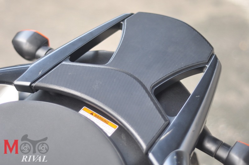 ทางด้านท้ายของเบาะได้ติดตั้งแร็ควัสดุเรซิ่นเอาไว้วางสัมภาระเพื่อรองรับการเดินทางไกล ขณะที่ทรงท่อไอเสียแบบยกสูง และล้อหน้าขนาด 19” บ่งบอกชัดว่ามันเกิดมาเป็นรถ Adventure Touring ขาลุยโดยแท้