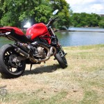 ในด้านการยึดเกาะ และการซับแรงสะเทือนโดยรวมออกแนวรถ Naked Sport มากกว่าจะเป็นรถ Naked Touring ซึ่งจะว่าไปแล้วก็เซ็ทออกมาได้อย่างเหมาะสมดี การเข้าโค้งนั้นยังคงมั่นใจได้ในระดับหนึ่งจากเนื้อยาง Pirelli Diablo Rosso II ยางหลังกว้าง 180 มม. ถึงแม้ว่าจะเป็นยางแบบ Touring ก็ตาม แต่ Compound ที่แข็งพอประมาณ และยังใช้งานได้ทนทาน ในขณะที่ให้ Grip การยึดเกาะบนถนนดีไม่แพ้ Rosso Corsa