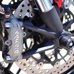ระบบเบรก จานดิสก์คู่หน้าขนาด 320 มม. ติดตั้งปั๊ม Brembo (M4-32) Monobloc คาลิปเปอร์ 4 ลูกสูบ ทางด้านท้ายจานดิสก์เดี่ยวขนาด 240 มม. คาลิปเปอร์ Brembo 2 ลูกสูบ โดยมาพร้อมระบบ ABS จาก Bosch ที่ปรับได้ 3 ระดับ