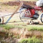 ภาพแรกเป็นการประยุกต์รถ 2 ล้อคันเก๋า ให้ทำหน้าที่เป็นเครื่องปั๊มน้ำ คงต้องขอบคุณล้อซี่ลวดที่มีขนาดความกว้างพอดีกับสายพานด้วย