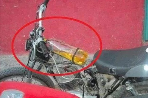สงสัยเจ้าของรถคันนี้คงกำลังทดสอบอัตราสิ้นเปลืองเป็นแน่ว่า น้ำมันจับใส่ขวดแบบนี้จะวิ่งได้สักกี่ กม.