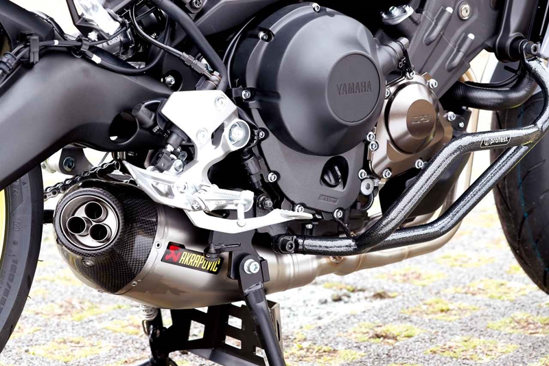 เริ่มกันด้วยท่อไอเสีย Akrapovic รุ่นล่าสุดจากตระกูล Racing Line ทำจากไทเทเนียมทั้งเส้น แต่ใช้ครอบปลายท่องานคาร์บอน และสะดุดตาสุดๆด้วยปลายท่อ 3 รูแบบเดียวกับปืนแกทลิ่ง, ครอบถังวัดสุหนังสีดำเงาตัดเย็บอย่างดีรองรับการติดตั้งกระเป๋าติดถัง และยังมีเบาะนั่งตัดเข้ารูปกับสรีระผู้ขับขี่/ผู้ซ้อนจาก BAGSTER