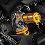 และเปลี่ยนชุดโช้กหน้าหัวกลับของ Ohlins ใหม่เป็นรุ่น NPX รหัส 25-30 ขนาดแกน 43 มิลลิเมตร ปรับเซ็ทได้ทุกค่า ส่วนด้านหลังยังคงเป็นรุ่น TTX 36 เช่นเดิม และไม่มีการติดตั้งระบบควบคุมไฟฟ้าเพิ่มเข้าไปแต่อย่างใด ส่วนนึงก็เพื่อรีดน้ำหนักตัวรถให้เบาลงกว่าเดิม ซึ่งผลที่ได้ก็คือน้ำหนักตัวของมันเมื่อรวมของเหลวพร้อมขี่จะเบากว่าพี่น้อง V4 ไปอีก 2 กิโลกรัม เหลือ 172 กิโลกรัม แต่เอาจริงๆแล้ว เรื่องน้ำหนักตรงนี้ต้องยกให้กับเครื่องยนต์ลูกใหม่ที่เบาลงมากกว่า