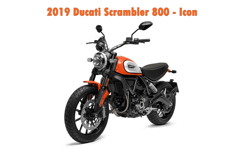สำหรับจุดแต่งต่างที่เห็นได้จากภายนอกของ Scrambler 800 Icon ปี 2019 เมื่อเทียบกับโฉมปี 2018 ก็คือ ชุดแผ่นอลูมิเนียมข้างถังน้ำมันที่มีการตีนูนออกมามากขึ้น, ล้อแม็กลายใหม่, ปลายท่อไอเสียทรงใหม่, เสริมแถบ DRL ไว้ในโคมไฟหน้า, เบาะนั่งแบนและกว้างกว่าเดิม, แฮนด์บาร์ปรับองศาใหม่เล็กน้อย