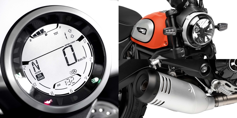 นอกจากนี้ทาง Ducati ยังเสริมฟีเจอร์เด็ดๆให้กับเจ้า Scrambler รุ่นใหม่คันนี้อีกหลายอย่างด้วยกัน ทั้งระบบ Cornering-ABS, ระบบปิดไฟเลี้ยวอัตโนมัติ, ระบบเชื่อมต่อหน้าจอมาตรวัดกับโทรศัพท์มือถือสำหรับควบคุมการเล่นเพลง หรือกดรับ/ยกเลิกการโทรเข้า, เพิ่มชุดคลัทช์ไฮดรอกลิกส์เพื่อความนุ่นนวลในการใช้งาน โดยที่ตัวก้านคลัทช์นั้นก็สามารถปรับระดับตามความถนัดของผู้ขี่ได้แล้วด้วย