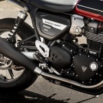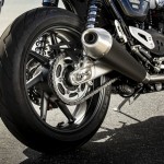 ระบบกันสะเทือนด้านหน้าเป็นแบบตะเกียบหัวตั้งธรรมดาขนาดแกน 41 มิลลิเมตร ส่วนด้านหลังเป็นแบบโช้กคู่ปรับเซ็ทพรีโหลดได้ (แข็ง/อ่อน), ระบบเบรกด้านหน้าเป็นแบบดิสก์คู่ขนาด 305 มิลลิเมตร ทำงานร่วมกับปั๊ม Brembo 4 พอร์ท และชุดล้อเป็นแบบอัลลอยด์ขนาด 17 นิ้ว รัดด้วยยาง Pirelli Rosso Corsa 3 ขนาด 120/70-17 และ 160/60-17 ตามลำดับหน้า-หลัง ขณะที่น้ำหนักตัวกลับเบาลงกว่า Thruxton ลงมา 10 กิโลกรัม เหลือ 196 กิโลกรัม