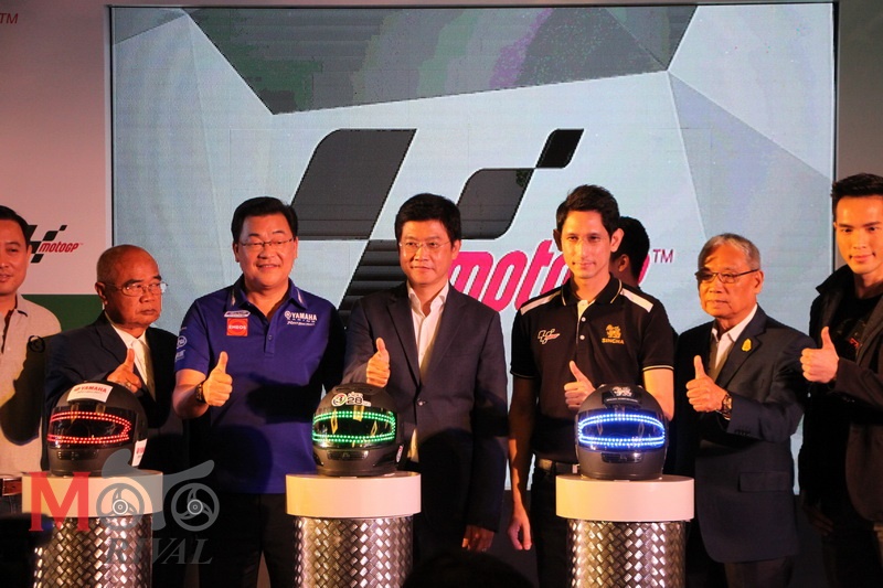 คุณประพันธ์ พลธนะวสิทธิ์ รองประธานกรรมการบริหาร บริษัท ไทยยามาฮ่ามอเตอร์ จำกัด กล่าวว่า “ทางยามาฮ่าเองทำการตลาดและส่งเสริมกิจกรรมต่างๆโดยผ่านมอเตอร์สปอร์ตเป็นหลัก โดยเฉพาะ 3 ปีที่ผ่านมา ยามาฮ่ามีทีมแข่ง Yamaha Thailand Racing Team ที่คว้าแชมป์ประเทศไทยและแชมป์ในการแข่งขัน MFJ Superbike All Japan Road Race Championship เมื่อปีที่ผ่านมา สำหรับการแข่งขัน MotoGP ที่ถือเป็นสุดยอดการแข่งขันรถจักรยานยนต์ทางเรียบระดับโลก ยามาฮ่าเองก็มีทีมแข่งที่สร้างชื่อเสียงระดับโลก โดยเฉพาะอย่างยิ่ง Valentino Rossi แชมป์โลก 9 สมัย และ Jorge Lorenzo แชมป์โลก 5 สมัย จากทีม Movistar Yamaha MotoGP และ 2 นักแข่งรุ่นใหม่ Pol Espagaro และ Bradley Smith จากทีม Monster Yamaha Tech 3 ซึ่งทั้งหมดนี้ มีแฟนคลับยามาฮ่าชาวไทยให้ความสนใจติดตามชมอย่างมากมาย และปีที่แล้วยามาฮ่ายังคว้าแชมป์ Triple Crown คือการครองมงกุฎแชมป์โลกมาได้ถึง 3 ใบด้วยกัน ได้แก่ แชมป์โลกประเภทนักแข่งได้แก่ Jorge Lorenzo (รองแชมป์โลกคือ Valentino Rossi) แชมป์โลกประเภททีมได้แก่ ทีม Movistar Yamaha MotoGP และแชมป์โลกประเภทผู้ผลิต ได้แก่ รถจักรยานยนต์ยามาฮ่า YZR-M1 จากปีที่ผ่านมาการถ่ายทอดสด MotoGP ในประเทศไทยทางช่อง 3 ถือเป็นเรื่องที่ดีสำหรับคอมอเตอร์สปอร์ตชาวไทยที่จะได้ชมฝีไม้ลายมือ และเชียร์นักแข่งระดับโลกได้ง่ายและกว้างขวางมากยิ่งขึ้น ซึ่งยามาฮ่าเองก็ยินดีร่วมสนับสนุนการถ่ายทอดสดนี้อย่างต่อเนื่องเป็นปีที่ 2 และเชื่อมั่นว่าจะเป็นอีกหนึ่งกีฬาที่จะเป็นที่นิยมของคนไทยต่อไปครับ”