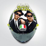ซึ่งเป็นลาย Rossi ถ่ายคู่กับคู่หูคนสนิท Alessio “Uccio” Salucci ซึ่งปัจจุบันเป็นผู้ช่วยส่วนตัวของ Rossi ทั้งใน VR46 Academy และ VR46 Racing Team โดยทั้งคู่แต่งตัวใส่สูท สวมแว่น Rayban Wayfarer