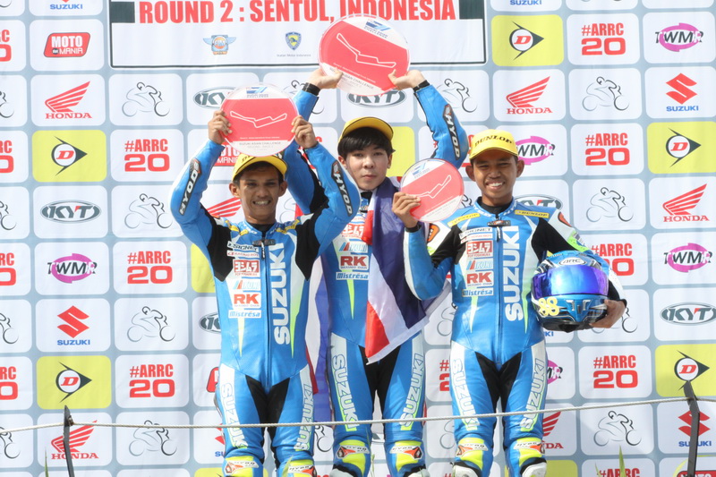 นักแข่งดาวรุ่งไทย พาทิศ ชูประเทศ “เดอะปาร์ค” ซึ่งลงแข่งในรุ่น Suzuki Asian Challenge สามารถทำผลงานได้อย่างยอดเยี่ยม ควบ Suzuki Raider 150 R เข้าที่ 2 ใน เรซแรก และเข้าที่ 1 ใน เรซที่ 2 ด้วยเวลารวม 16:36.833 ทิ้งห่างอันดับ 2 จากอินโดนีเซีย แบบขาดลอย ทำให้คะแนนรวมในสนามนี้ เป็นที่ 1 คว้าแชมป์ สนาม 2 ประเทศอินโดนีเซีย ส่งผลให้ตารางคะแนนรวมทั้ง 2 สนาม นักแข่งไทยมีคะแนนนำเป็นอันดับที่ 1