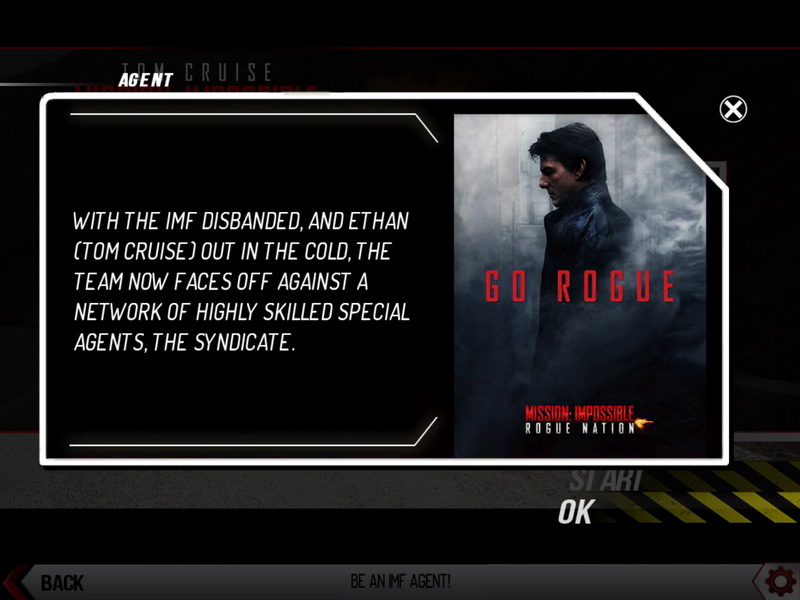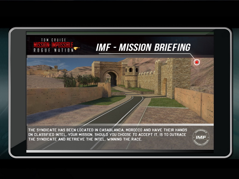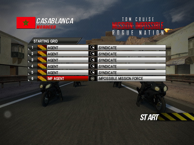 โดยเกมนั้นได้ทำการจำลองการขี่แข่งขันในสนาม Casablanca Morocco ซึ่งมีระยะทางทั้งสิ้นกว่า 6.6 กม. โดยผู้เล่นจะรับบท Agent จากหน่วย IMF (Mission Impossible Force) ขี่รถ BMW S1000RR คันสีดำ ปะทะกับ 5 Agent จาก Syndicate