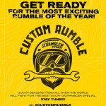 การแข่งขันประกวดการโมดิฟายด์รถ Ducati Scrambler ในชื่อ Custom Rumble กว่า 40 คัน ที่ได้ส่งรถ Ducati Scrambler เข้าประกวดในการแข่งขัน Custom Rumble โดยล่าสุด ได้มีการประกาศรายชื่อ 5 คันสุดท้ายเป็นที่เรียบร้อย ซึ่งทั้ง 5 คันมาจาก ทั้ง 5 ทวีปทั่วโลก