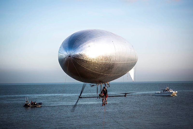 สำหรับพาหนะที่เค้าใช้ในการสร้างสถิติในครั้งนี้คือ เรือเหาะขนาดเท่ารถบัสที่อัดด้วยแก๊สฮีเลียมเต็มลำ แล้วติดตั้งชุดขับเคลื่อนด้วยใบพัดขนาดใหญ่ 2 ใบ ซึ่งหมุนได้ด้วยการปั่นหรือถีบจากกำลังขาของมนุษย์ โดยระยะทางทั้งหมดที่เค้าต้องปั่นนั้นอยู่ที่ประมาณ 38 กิโลเมตร ซึ่งนับตั้งแต่ขอบแดนเมือง Kent ในประเทศอังกฤษ ตัดผ่านช่องแคบมหาสมุทรไปยังชายหาดในประเทศฝรั่งเศษ