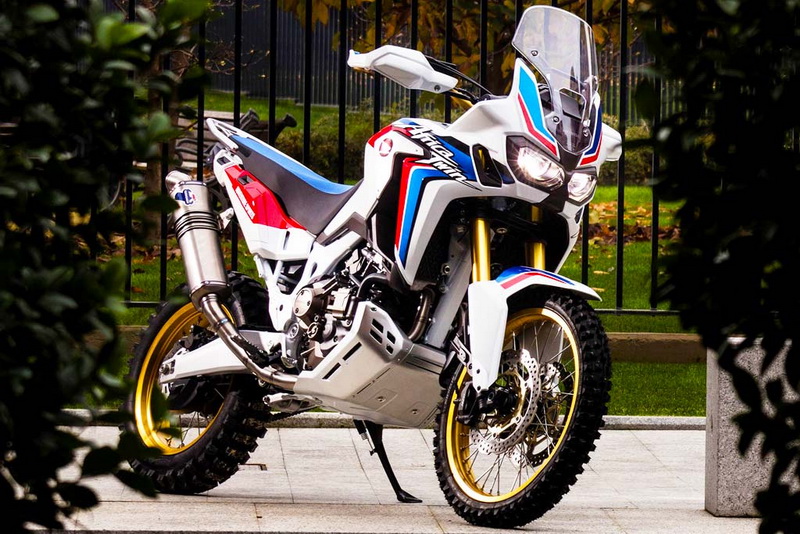 ซึ่งเจ้า Africa Twin Adventure Sports Concept. จะมีการออกแบบที่ดูสมบุกสมบันมากขึ้น โดยแทบจะละทิ้งการขับขี่บนทางเรียบได้เลย เริ่มจากการ์ดแคร้งก์ ที่ถูกออกแบบให้ครอบคลุมท้องเครื่องมากขึ้น จนเลยระดับบังโคลนของล้อหน้า เมื่อเทียบกับเวอร์ชั่นปกติ ที่อยู่ระดับเดียวกันพอดีกับบังโคลน, เปลี่ยนยางทัวร์ริ่ง เป็นยางหนามเพื่อสะดวกในการตะกุยโคลนหรือหินมากขึ้น, เปลี่ยนจากเบาะสองตอนเป็นเบาะตอนเดียว และแน่นอนว่าถอดพักเท้าคนซ้อนไปด้วย ออกแบบให้ไม่ต้องมีคนซ้อนไปด้วยเลย และสุดท้าย ท่อทรงสูงจาก Termignoni ที่ถูกออกแบบให้มีลักษณะเดียวกันรถ Dakar-Rally