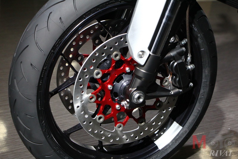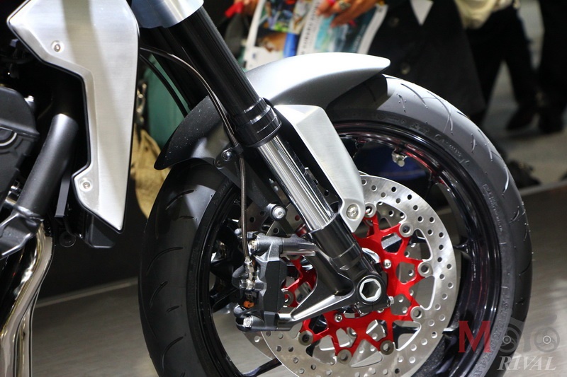 จุดแรก ชุดล้อและเบรกหน้าที่ยึดแบบมาจาก Honda CBR1000RR รุ่นปี 2018 ซึ่งแน่นอนว่ามันจะต้องมาพร้อมกับระบบ ABS อันขึ้นชื่อของทางค่ายด้วยหากทำตลาดจริงๆ แม้ว่าในตัวจานเบรกของรถคอนเซปท์คันนี้จะไม่มีจานเซนเซอร์ติดตั้งมาให้ด้วย