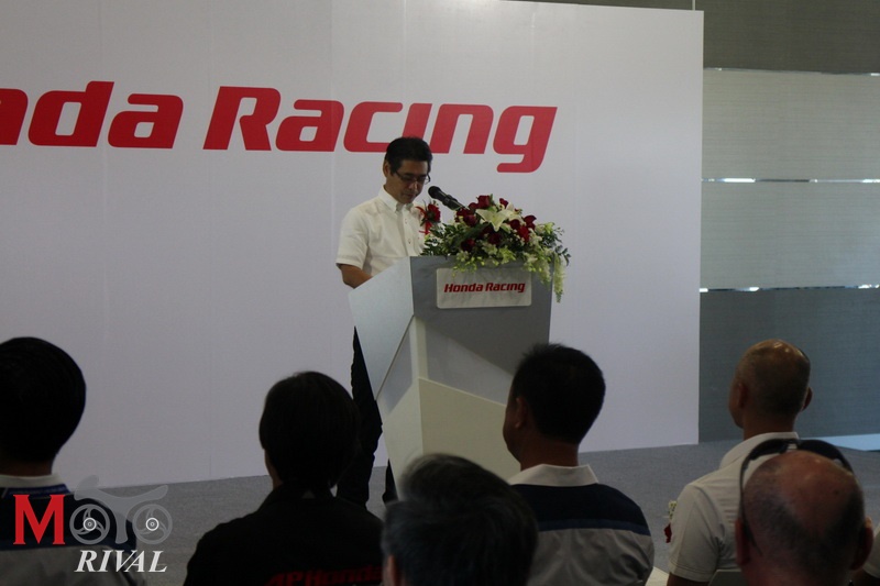 ทางด้าน นายโนริอากิ อาเบะ หัวหน้าเจ้าหน้าที่บริหารปฏิบัติการประจำภูมิภาคเอเชียและโอเชียเนีย บริษัท ฮอนด้า มอเตอร์ จำกัด และประธานกรรมการบริหาร และซีอีโอ บริษัท เอเชี่ยน ฮอนด้า มอเตอร์ จำกัด ได้กล่าวเพิ่มเติมว่า “จากนโยบายของฮอนด้าที่มุ่งผลักดันนักแข่งเอเชียสู่ระดับ World GP กลุ่มบริษัทฯในเครือฮอนด้าทุกบริษัทจะผนึกกำลังร่วมกับ ฮอนด้ามอเตอร์ประเทศญี่ปุ่น เพื่อทำให้ฝันนี้เป็นจริง จึงอยากขอให้คนไทยร่วมสนับสนุนและเป็นกำลังใจให้นักแข่งทั้งของไทยและเอเชีย”