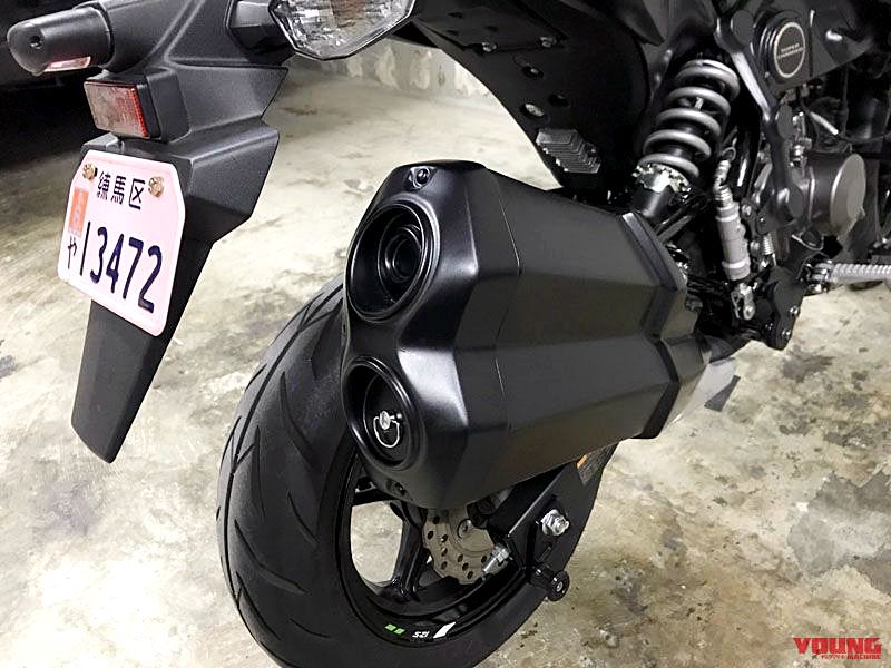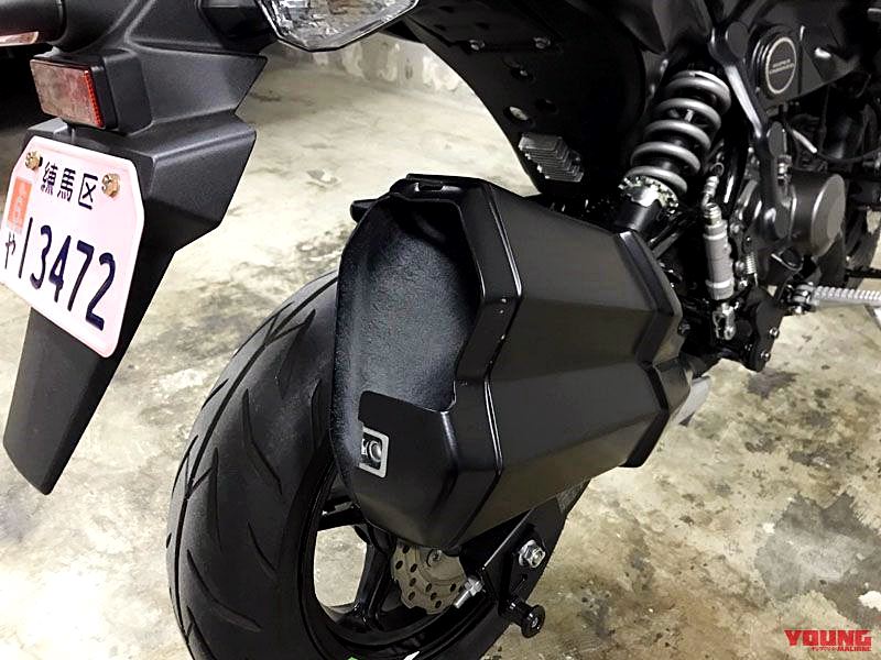 และถ้าหากสังเกตุดูดีๆทาง K’s-STYLE ยังเลือกที่จะออกแบบปลายท่อไอเสียใบใหม่ที่มีดีไซน์เหมือนของพี่ใหญ่ “ยักษ์เขียว” มาติดตั้งใน Z125 Mini-H2 คันนี้ด้วย แต่เอาจริงๆแล้วเจ้าปลายท่อที่เราเห็นอยู่นั้นไม่ใช่ปลายท่อจริงๆ แต่เป็นกระเป๋าเอาไว้เก็บของที่ดีไซน์ขึ้นมาให้เหมือนปลายท่อเท่านั้น ส่วนท่อไอเสียจริงๆของตัวรถนั้นยังเป็นของเดิมที่ติดรถออกมาตั้งแต่โรงงาน