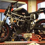 แน่นอนว่าเพียงมองครู่เดียวเราก็รู้ได้ทันทีว่าขึ้นตอนแรกที่ทาง Louis ต้องจัดการกับเจ้า Z125 คันนี้ก่อนก็คือ การถอดชิ้นส่วนแฟริ่งซึ่งมีน้อยนิดอยู่แล้วออกไปทั้งหมด หลังจากนั้นก็เริ่มตัดซับเฟรมท้ายให้สั้นลงเพื่อเอาไว้ใส่ชุดท้ายสั้นทรงแทรคเกอร์ ต่อด้วยการจัดการกับระบบไฟทั้งหมดเพื่อติดตั้งระบบไฟ LED ชิ้นเล็กๆรอบคัน