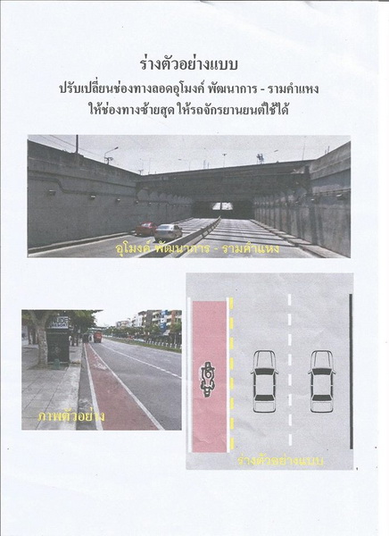 ซึ่งผลจากการหารือ ทางรองผู้กำกับจราจร สน.หัวหมาก ได้ทำแบบร่างการเพิ่มเลนจักรยานยนต์ในอุโมงค์คลองตัน หลังจากที่มีการบังคับใช้คำสั่ง ห้ามรถจักรยานยนต์ขึ้นสะพานและลงอุโมงค์ ที่มีประชาชนในพื้นที่ได้รับความเดือดร้อนจำนวนมาก