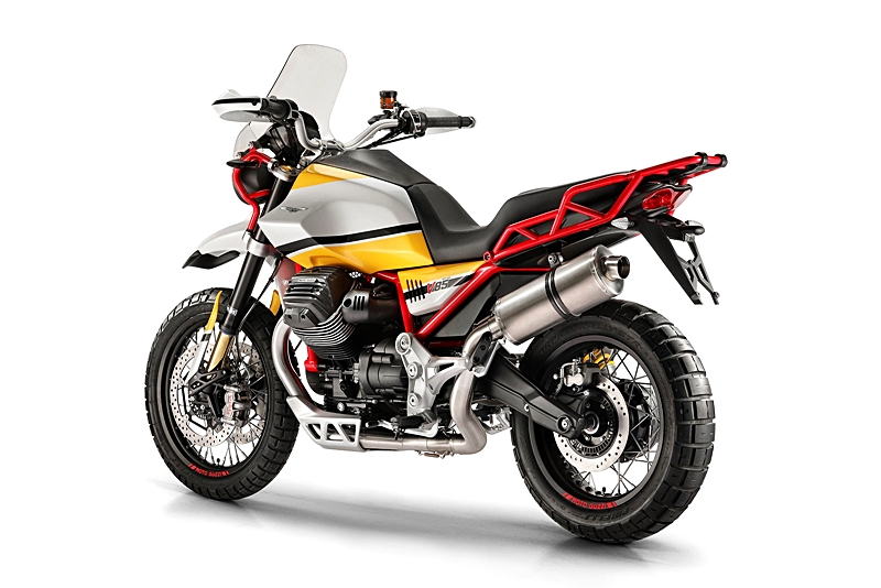 ในส่วนของเครื่องยนต์ V-Twin วางขวางลำตัวรถนั้นเป็นบล็อคใหม่ที่สร้างขึ้นมาโดยเฉพาะสำหรับเจ้า V85 คันนี้ โดยตัวเลขความจุก็อยู่ที่ 850cc ซึ่งมันสามารถสร้างแรงม้าได้สูงสุดที่ 80 ตัว (Bhp) ด้วยกัน ด้านเฟรมหรือโครงหลักตัวรถและชุดเพลาขับ ต่างก็เป็นแบบเหล็กถักที่ออกแบบขึ้นมาใหม่ทั้งหมด ส่วนระบบกันสะเทือนนั้นก็ไม่ใช่ใครที่ไหน แต่เป็นแบรนด์ Ohlins นั่นเองที่เข้ามารับผิดชอบในจุดนี้