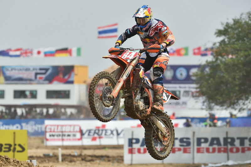 หลังจากที่มีการ Qualified ในวันเสาร์ที่ 5 มีค. การแข่งขันรถจักรยานยนต์โมโตครอสชิงแชมป์โลก 2016 สนาม 2 รายการ MXGP Thailand ก็ได้ระเบิดความมันส์ในเมืองไทยเป็นปีที่ 4 ติดต่อกันที่ สนามสุพรรณบุรี มอเตอร์สปอร์ตแลนด์ ซึ่งตั้งอยู่ที่ ต.สระกระโจม อ.ดอนเจดีย์ จ.สุพรรณบุรี โดยการแข่งขันมีขึ้นในอาทิตย์วันที่ 6 มีนาคมนี้ ท่ามกลางแฟนความเร็วหลายหมื่นที่หลั่งไหลเข้าชมการแข่งขัน