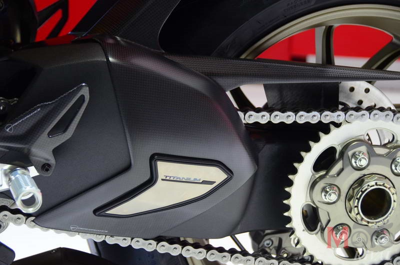 ระบบกันสะเทือนหน้าหลังรวมถึงชุดกันสะบัดเป็นแบบปรับไฟฟ้า หน้า-หลังจาก Ohlins พร้อมติดตั้งล้ออลูมิเนียมฟอร์จ แบบ 3 ก้านน้ำหนักเบาจาก Marchesini ส่งผลให้น้ำหนักตัวโดยรวมอยู่ที่ 195 กิโลกรัม ส่วนระบบเบรกติดรถเป็นของ Brembo รุ่น Stylema Monobloc (M4.30) แบบคู่สำหรับล้อหน้า ส่วนด้านหลังเป็นแบบสองลูกสูบคาลิปเปอร์เดี่ยวจากแบรนด์เดียวกัน ทั้งหมดทำงานร่วมกับระบบ ABS สุดล้ำจาก Bosch