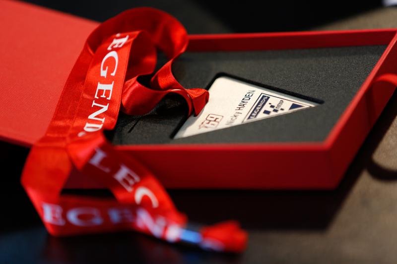 CEO ของ Dorna Sports Carmelo Ezpeleta ได้เข้าร่วมมอบเหรียญตำนานนี้ให้แก่ Hayden ที่สนามสุดท้ายของเขาในการแข่งขัน MotoGP ที่ Valencia ประเทศสเปน