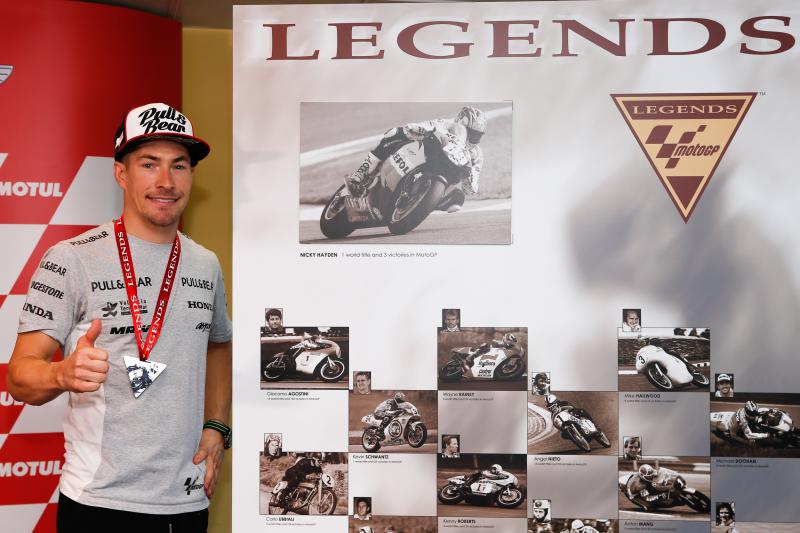 สำหรับ Nicky Hayden จะถือเป็นนักบิดในตำนาน MotoGP™ คนที่ 22 ต่อจาก Giacomo Agostini, Mick Doohan, Geoff Duke, Wayne Gardner, Mike Hailwood, Daijiro Kato, Eddie Lawson, Anton Mang, Angel Nieto, Wayne Rainey, Phil Read, Jim Redman, Kenny Roberts, Jarno Saarinen, Kevin Schwantz, Barry Sheene, Marco Simoncelli, Freddie Spencer, Casey Stoner, John Surtees Carlo Ubbiali