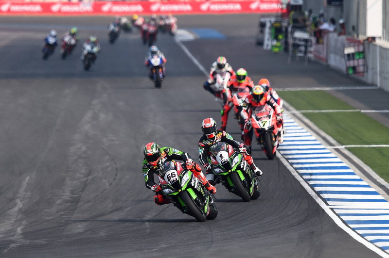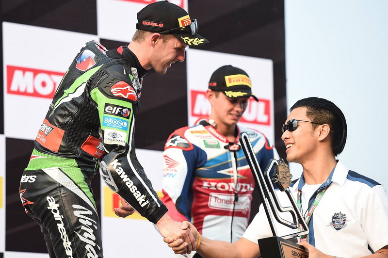Jonathan Rea นักบิดแชมป์โลก 2015 WSBK และ แชมป์เก่าสนาม ช้างฯ ปีที่แล้วทั้ง 2 เรซ ยังคงมาตรฐานได้ดี คว้าแชมป์ใน Race แรกได้สำเร็จ