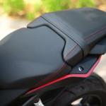 จาก 2 จุดนี้ ทำให้ท่านั่งมันใกล้เคียง Sport Replica มากขึ้น ทำให้ตอนหมอบเพื่อหลบลมท่าทางไม่เก้ๆกังๆสามารถกอดถังน้ำมันได้กระชับเข้ารูปพอดี และถ้าหากจะลองโหนโค้งดู ก็ยิ่งเข้ากันเพราะด้วยตำแหน่ง, ความกว้าง, องศา ของแฮนด์ และพักเท้าเอื้อให้ทำได้แบบนั้นจริงๆ (ติดอยู่นิดเดียวคือเซนเซอร์พักเท้าค่อนข้างยาว ทำให้ขูดพื้นง่ายไปนิด แต่เพื่อความปลอดภัย ก็ใส่ไว้ดีกว่าครับ)