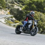 และช่วยให้การขี่ควบคุมรถแรงๆ เช่นนี้ ยังหนีบถังได้กระชับง่าย จึงทำให้การควบคุมรถทำได้ดีมั่นใจกว่า XDiavel ที่พักเท้ายื่นไปด้านหน้า
