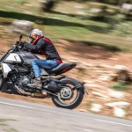 สำหรับตัว องศา Rake ที่ 27 และ ระยะเทรล 120 มม. ทำให้ภาพรวมการคอนโทรลรถทางด้านหน้า ใกล้เคียงสไตล์รถ Naked Sport มากกว่าครุยเซอร์ นั่นจึงทำให้มันดูมีความฉับไว ในการเข้าโค้งที่ดีขึ้น แต่อย่างไรก็ดี ด้วยระยะของแฮนด์ และไซส์ล้อหลังขนาด 240 มม. การหัก Steering ในโค้งจึงอาจทำให้รถมันดูขืนๆ ไปบ้าง เมื่ออาจต้องเลี้ยวในทางแคบๆ แต่เมื่อเราขี่ในโค้งที่กว้าง การเอียงเทรถไปทั้งคันนั้น การคอนโทรลรถโดยรวมถือว่าทำได้ง่ายกว่า Diavel เดิม และ XDiavel
