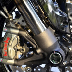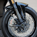 ระบบเบรก จานดิสก์หน้าคู่ขนาด 320 มม. ปั๊มเบรกหน้า Brembo M50 ซึ่งเป็นแบบ Radial Monobloc 4 สูบ มาพร้อมระบบ Cornering ABS จาก Bosch