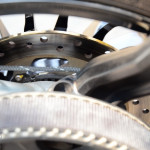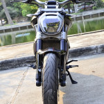 ด้านหลังจากดิสก์เดี่ยวขนาด 265 มม. คาลิปเปอร์ Brembo 2 สูบ ซึ่งอยู่ทางฝั่งซ้าย หลบซ่อนอยู่ด้านในสายพาน มาพร้อมระบบ Cornering ABS จาก Bosch เช่นเดียวกัน