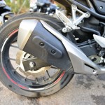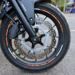 ขณะที่ระบบเบรก ปั๊มเบรกหน้า Nissin ปรับรูปแบบตัวคาลิปเปอร์ใหม่ จาก ตัวหนังสือนูน มาเป็นแบนเรียบ ยังคงทำหน้าที่ได้ดีเช่นเคย ผู้ขี่ยังกำเบรกลงน้ำหนักได้อย่างเต็มที่ เพราะมีระบบ ABS ช่วย ขณะที่ลูกเล่นเพิ่มคือ ก้านเบรกปรับระดับได้ แต่น่าเสียดาย ที่น่าจะใส่ก้านคลัชปรับระดับได้ให้ด้วย