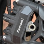 ระบบเบรก ABS หน้า-หลัง จานดิสก์เบรกคู่หน้าขนาด 300 มม. ปั๊มเบรก Monobloc Radial Mount คาลิปเปอร์ 4 ลูกสูบ (ตีแบรนด์ Kawasaki) ปั๊มเบรกบน Nissin ด้านหลังจานเบรกหลังเดี่ยวขนาด 250 มม. ลูกสูบเดี่ยว