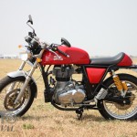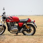 เริ่มด้วยรถคันแรกที่เราทดสอบ Royal Enfield Continental GT ซึ่งนับได้ว่าเป็นรถจักรยานยนต์ที่เบาที่สุด เร็วที่สุด และทรงพลังที่สุดของ Royal Enfield